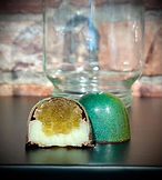 Ingrédients : chocolat noir, chocolat citron yuzu, crème, trimoline, sirop de glucose, beurre de cacao, alcool